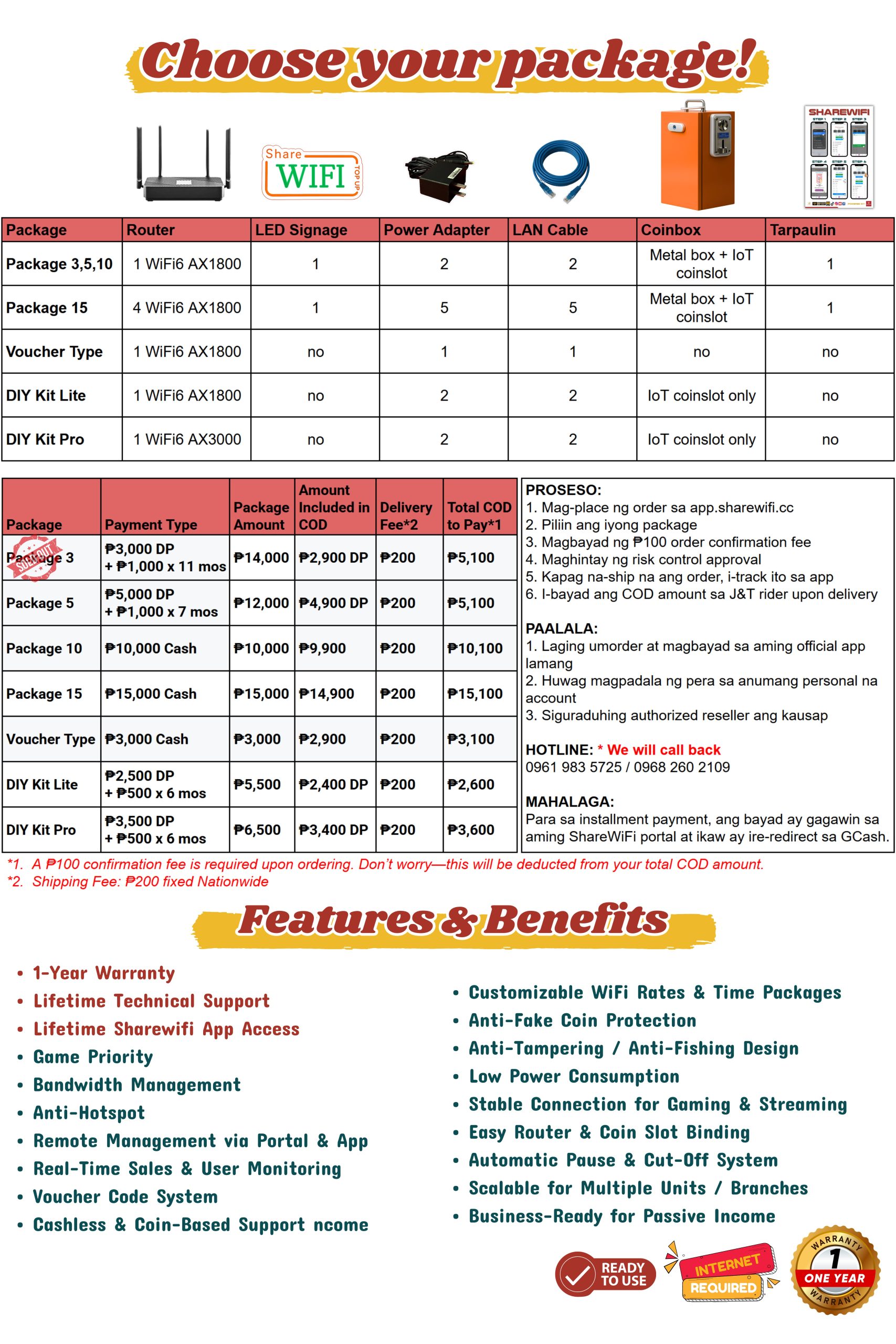 Daytoy a wireless ISP connection option ket mangaramid iti ShareWiFi a mas convenient ngem ti traditional Piso WiFi systems a nagsasaruno laeng iti wired connections.