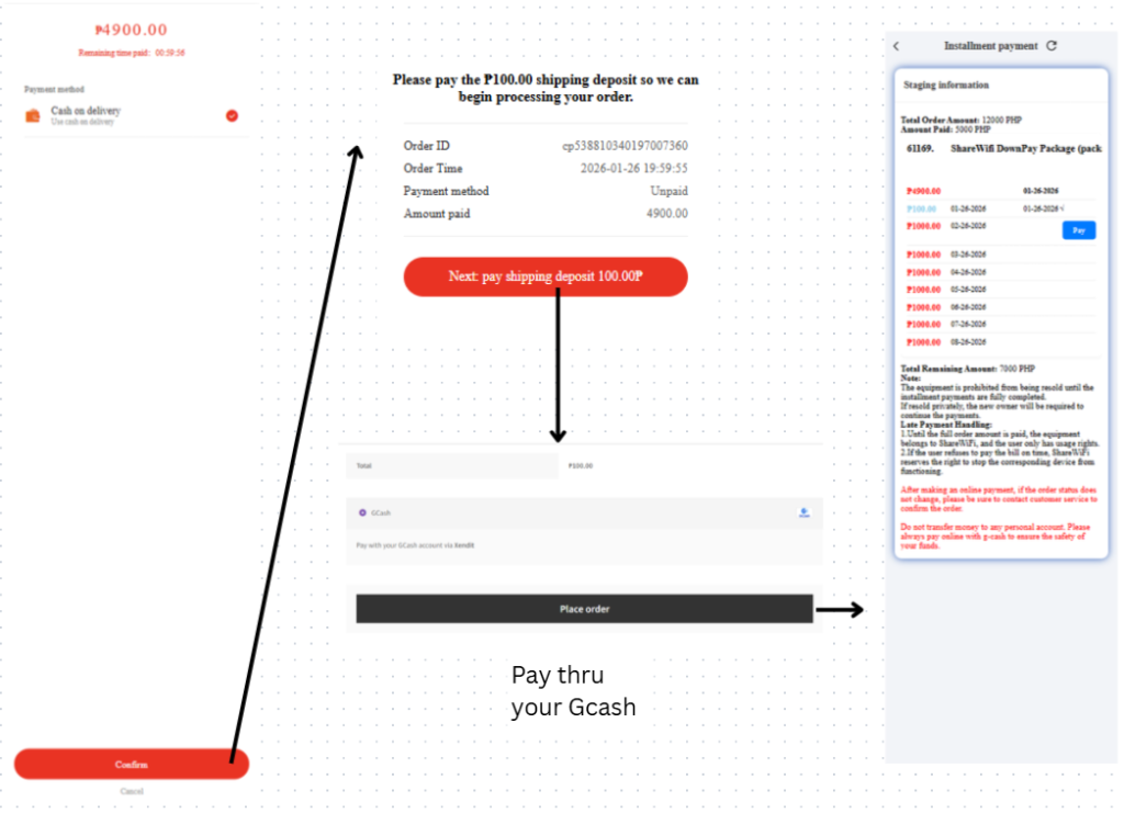 1. Agbayad iti Php 100 tapno makumpirma ti order