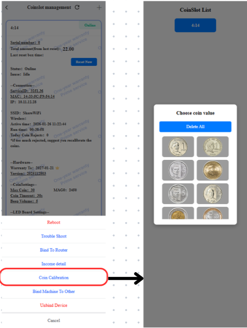 • Mangaramid ti coin calibration direkta manipud iti phone